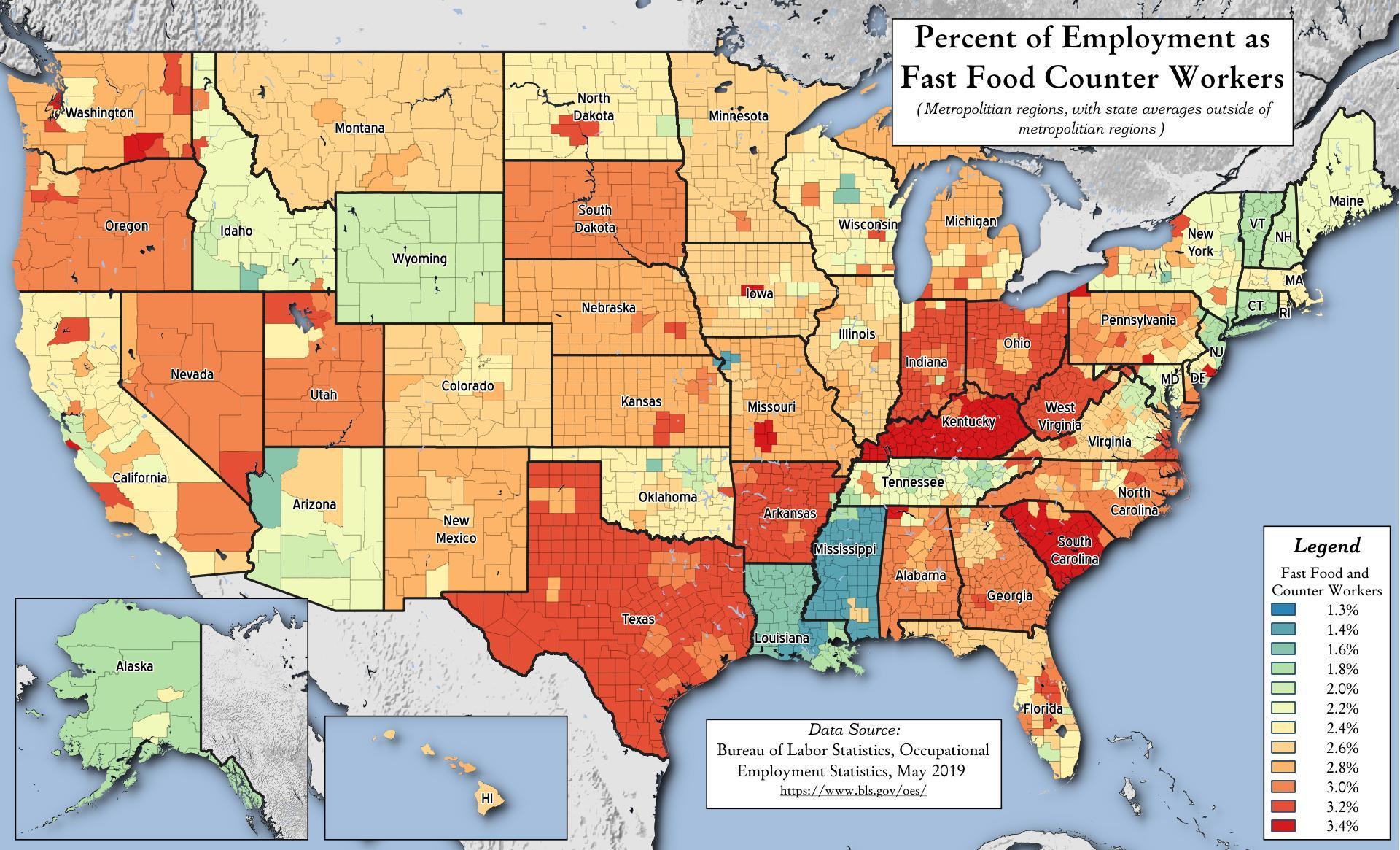 Thematic Map: Percent of Employment as Fast Food Workers Download a High Resolution JPEG Image of the Percent of Employment as Fast Food Workers or an Adobe Acrobat Printable PDF of the Thematic Percent of Employment as Fast Food Workers. More about Work...Maps and InteractivesPercent of Employment as Fast Food WorkersMedian Yearly WagesNew York State Manufacturing Employee SalaryCowee State Forest... photos, maps and other content from from Work. Leave a Reply Cancel replyYour email address will not be published. Required fields are marked *Comment * Name * Email * Website Save my name, email, and website in this browser for the next time I comment. Δ