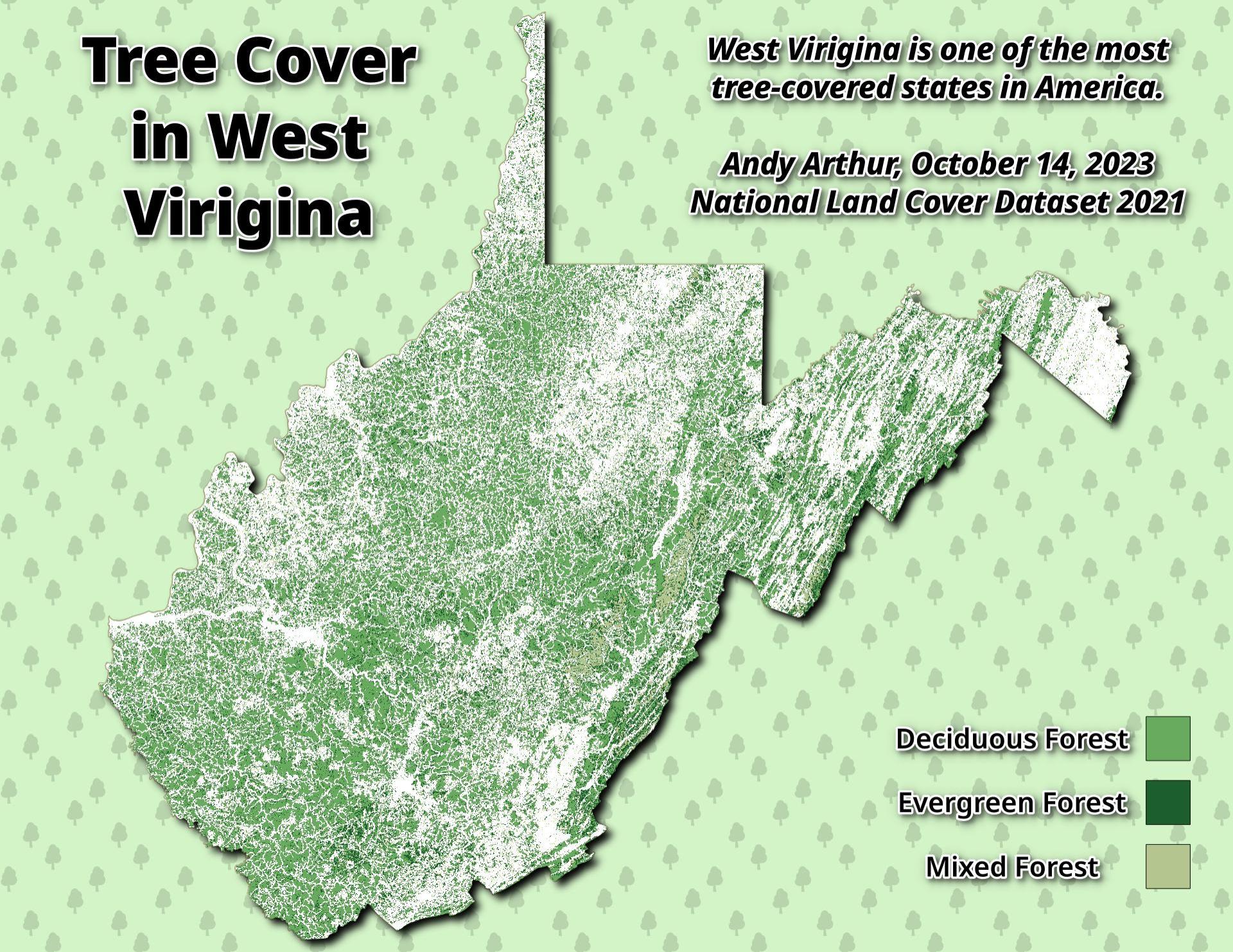 Thematic Map: West Viriginia Tree Cover Download a High Resolution JPEG Image of the West Viriginia Tree Cover or an Adobe Acrobat Printable PDF of the Thematic West Viriginia Tree Cover. More about Tree Cover...Maps and InteractivesCatskills are Highly Tree CoveredWest Viriginia Tree CoverPercent of Land Forested – New York State Counties in 2021Forest Cover in America... photos, maps and other content from from Tree Cover. Leave a Reply Cancel replyYour email address will not be published. Required fields are marked *Comment * Name * Email * Website Save my name, email, and website in this browser for the next time I comment. Δ