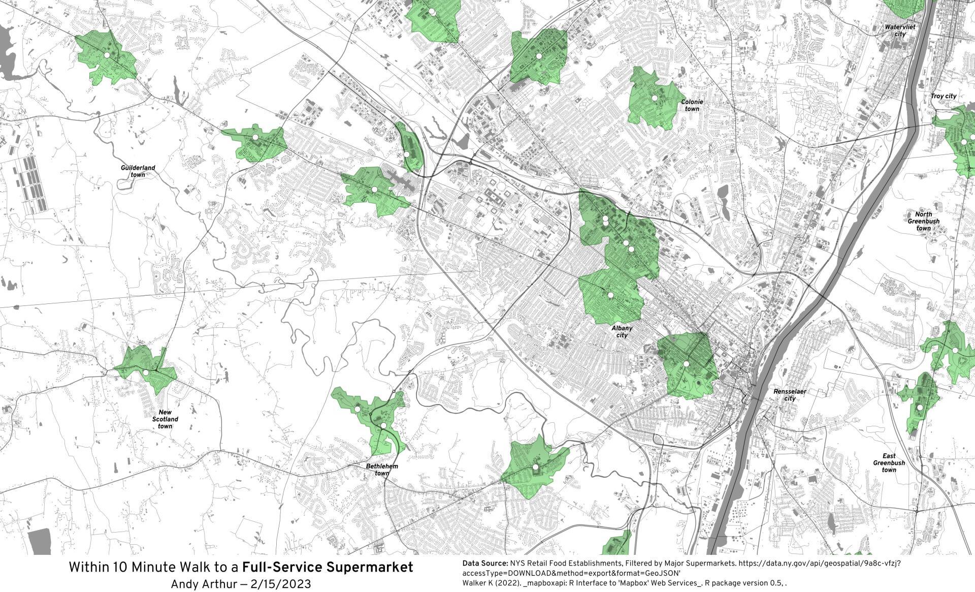 Thematic Map: Within a 10 Minute Walk to a Supermarket Download a High Resolution JPEG Image of the Within a 10 Minute Walk to a Supermarket or an Adobe Acrobat Printable PDF of the Thematic Within a 10 Minute Walk to a Supermarket. About Within a 10 Minute Walk to a Supermarket .... If you don't own a car, there is only a few parts of Albany where you can walk a short distance to get to a supermarket. Green areas are those within a 10 minute walk of a major supermarket -- Price Chopper, Hannaford, Tops, Shop-Rite, or Walmart. More about Food...Maps and InteractivesUnited Steaks of America map: If each state could have only one meat, what would it be?Within a 10 Minute Walk to a SupermarketSNAP Here’s Who Will Be Affected by Disruptions to Food Aid – The New York Times... photos, maps and other content from from Food. Leave a Reply Cancel replyYour email address will not be published. Required fields are marked *Comment * Name * Email * Website Save my name, email, and website in this browser for the next time I comment. Δ